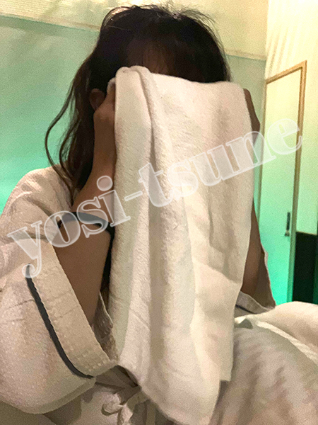 カメラを向けると恥ずかしそうにタオルで隠します笑笑
