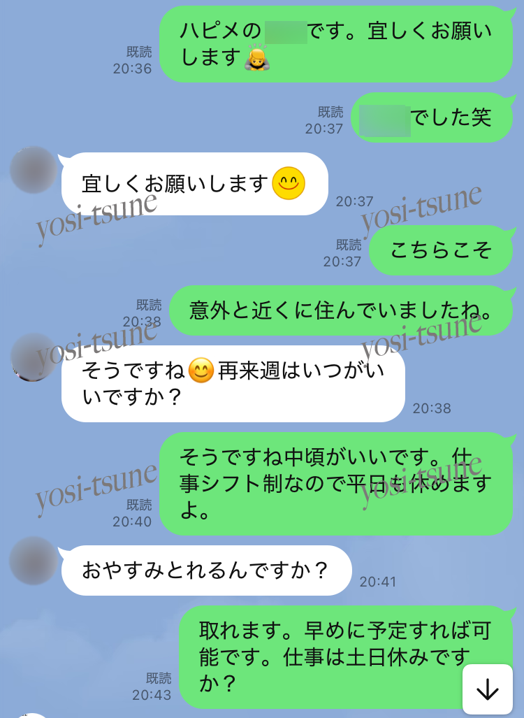 だいぶ前なのでメッセージのスクショは残っていませんでしたが、確かすぐにラインを交換したのでその内容です。